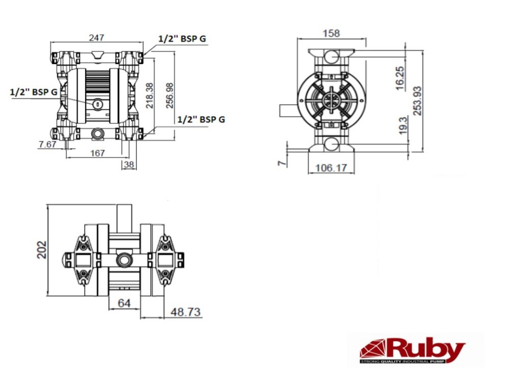 DRUCKLUFT-DOPPELMEMBRANPUMPE RUBY 1/2" PP/PTFE