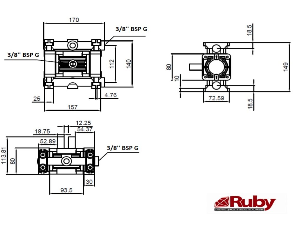 DRUCKLUFT-DOPPELMEMBRANPUMPE RUBY 3/8" PVDF/PTFE