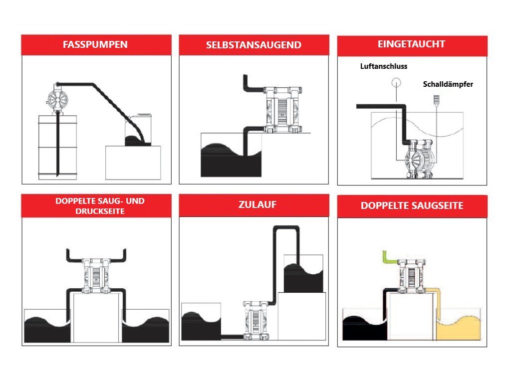 ■ Saug-/Druckanschlüsse: 3/8" BSP Innengewinde